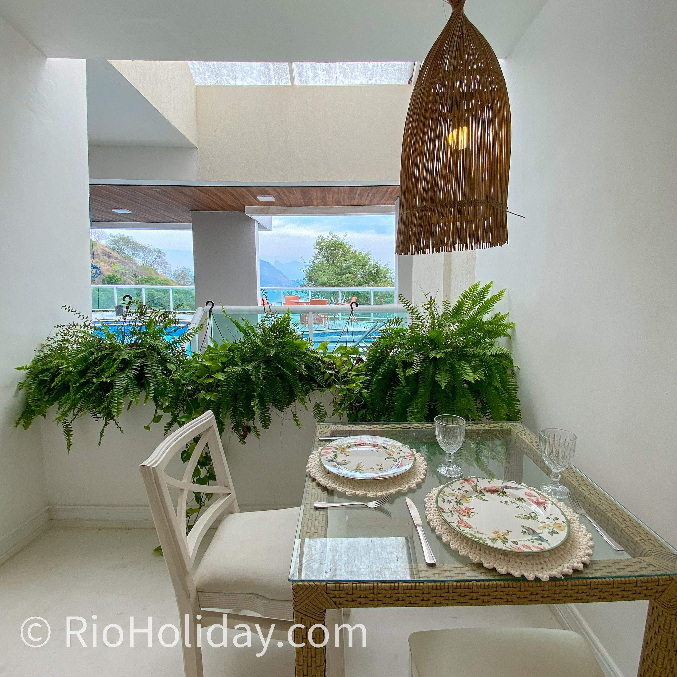 The Samba Suite is one of two suites on our fourth-floor pool deck. Dance on out to the pool and take advantage of our spectacular views of Rio de Janeiro and the Bay of Guanabara. It has a queen size bed, a vaulted ceiling, and measures 330 square feet (about 30 square meters). The pool deck is open to all guests from 9:00 AM to 9:00 PM.